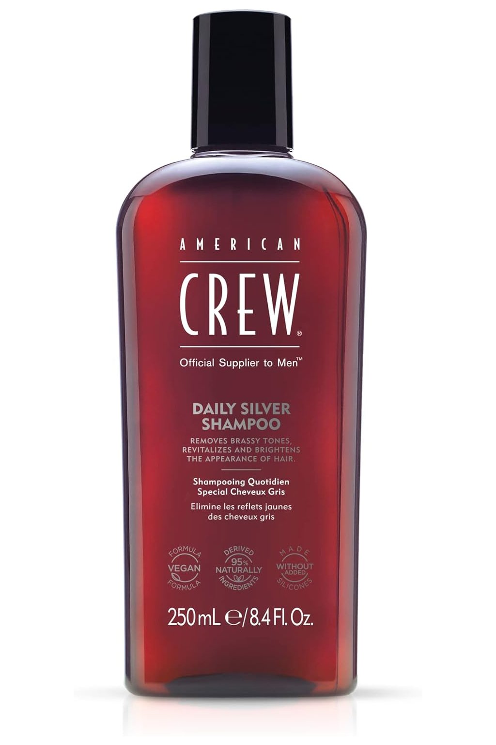 American Crew Daily Silver Hair Shampoo (250 ml) jest idealny dla mężczyzn z siwymi włosami, którzy chcą ożywić swój wygląd. Pomaga zneutralizować niepożądane miedziane i żółte odcienie włosów, utrzymując siwy kolor jasny i lśniący. Szampon delikatnie oczyszcza włosy i skórę głowy, nie wysuszając ich, jednocześnie nawilżając i wygładzając. Jego delikatna formuła sprawia, że nadaje się do codziennego stosowania bez obciążania włosów i skóry głowy.