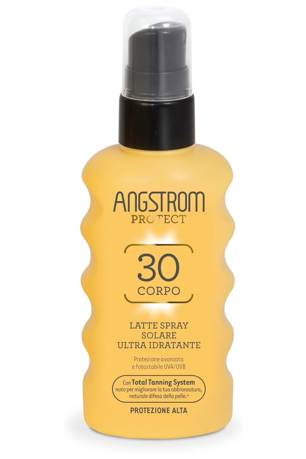 Angstrom Protect Sun Lotion do ciała w sprayu SPF 30 175 ml to idealne połączenie wygody stosowania i niezawodnej ochrony przeciwsłonecznej. Lekki balsam w sprayu szybko się wchłania i nie pozostawia uczucia tłustości ani białego osadu. Dzięki systemowi zawierającemu filtry UVA/UVB chroni skórę przed poparzeniem słonecznym i przedwczesnym starzeniem. Spray umożliwia łatwą i równomierną aplikację, nadaje się do szybkiej pielęgnacji ciała i twarzy, pozostawiając skórę miękką i chronioną. Idealny na letnie wakacje i codzienną ochronę na świeżym powietrzu. Wodoodporne składniki zapewniają długotrwały efekt podczas opalania lub pływania.