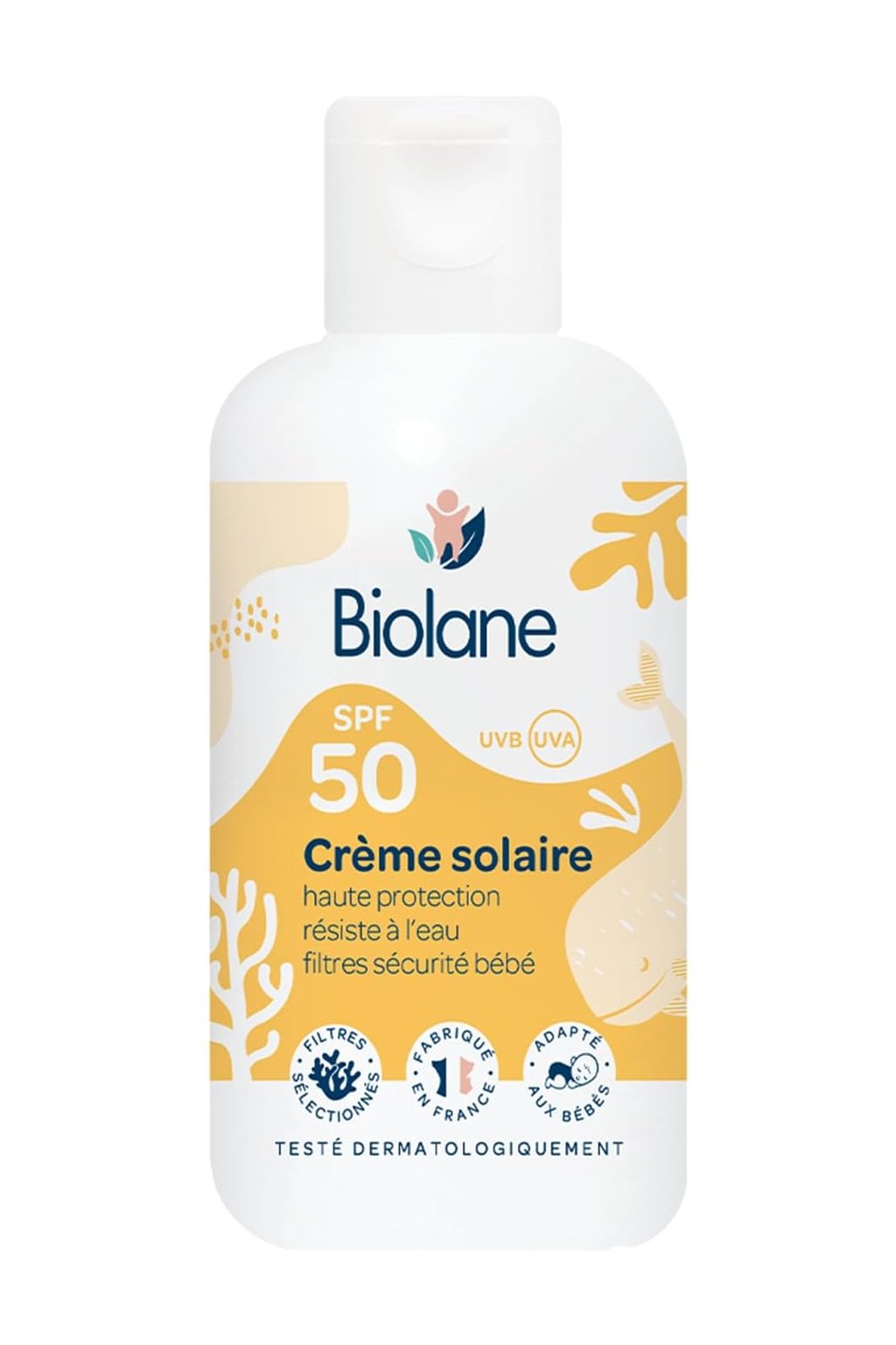 BIOLANE Baby Sunscreen SPF 50 100 ml to delikatny i wysoce skuteczny krem opracowany specjalnie dla wrażliwej skóry niemowląt. Dzięki połączeniu filtrów mineralnych zapewnia szerokie spektrum ochrony przed promieniami UVA i UVB oraz minimalizuje ryzyko podrażnień i reakcji alergicznych. Krem jest wzbogacony o składniki nawilżające, które utrzymują skórę elastyczną i chronią ją przed wysuszeniem w słoneczne dni. Jest wodoodporny i łatwo się wchłania, nie pozostawiając białych śladów. Ten krem przeciwsłoneczny jest idealnym wyborem dla bezpiecznej i niezawodnej ekspozycji na słońce dla dzieci i niemowląt.
