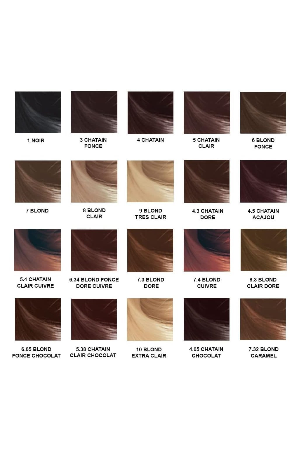 Składniki kremu koloryzującego (INCI): aqua, cocamide MEA, glyceryl stearate, cetearyl alcohol, stearic acid, ethanolamine, palmitic acid, toluene-2,5-diamine sulfate, glycerin, C12-13 alkyl lactate, p-aminophenol, bis-diglyceryl polyacyladipate-2, tri-C14-15 alkyl citrate, sodium hydrosulfite, kwas askorbinowy, tetrasodium EDTA, olej z nasion punica granatum, hydrolizowana keratyna, hydrolizowane białko ryżowe, glikol decylenowy, 4-chlororezorcynol, 2,4-diaminofenoksyetanol HCl, 1-naftol, m-aminofenol, 2-metylorezorcynol, etoksydiglikol, siarczan oksychinoliny.