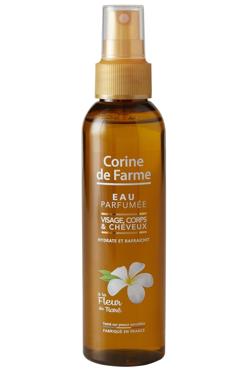 Corine de Farme Tiare Monoï Eau de Parfum (150 ml) to odświeżająca mgiełka do twarzy, ciała i włosów o egzotycznym zapachu kwiatu tiaré i olejku monoï. Zapewnia delikatny i zmysłowy zapach przez cały dzień, jednocześnie nawilżając i odświeżając skórę i włosy. Idealny na letnie dni lub za każdym razem, gdy pragniesz poczuć się jak w tropikalnym raju. Nie zawiera alkoholu, dzięki czemu jest delikatny dla wrażliwej skóry i nie pozostawia tłustego filmu. Poręczny spray jest łatwy w użyciu o każdej porze dnia.