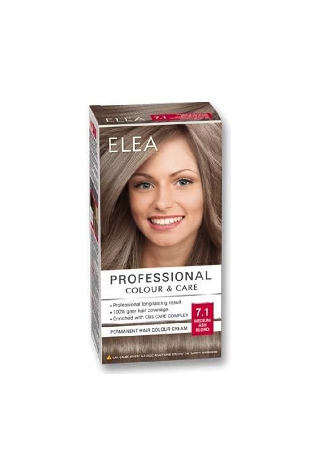 ELEA Professional Permanent Cream Hair Color 7.1 Medium Ash Blonde zapewnia intensywny, długotrwały odcień o naturalnym popielatym odcieniu, idealny do neutralizacji ciepłych tonów. Delikatna formuła z kompleksem odżywczym wnika głęboko we włókno włosa, zapewniając równomierne pokrycie przy jednoczesnej ochronie struktury włosa. Po nałożeniu pozostawia włosy miękkie, lśniące i elastyczne w dotyku. Uzyskany kolor wygląda naturalnie i elegancko, bez żółtych refleksów. Nadaje się do użytku domowego i profesjonalnego, szczególnie dla kobiet poszukujących chłodnego odcienia blond bez niszczenia włosów.