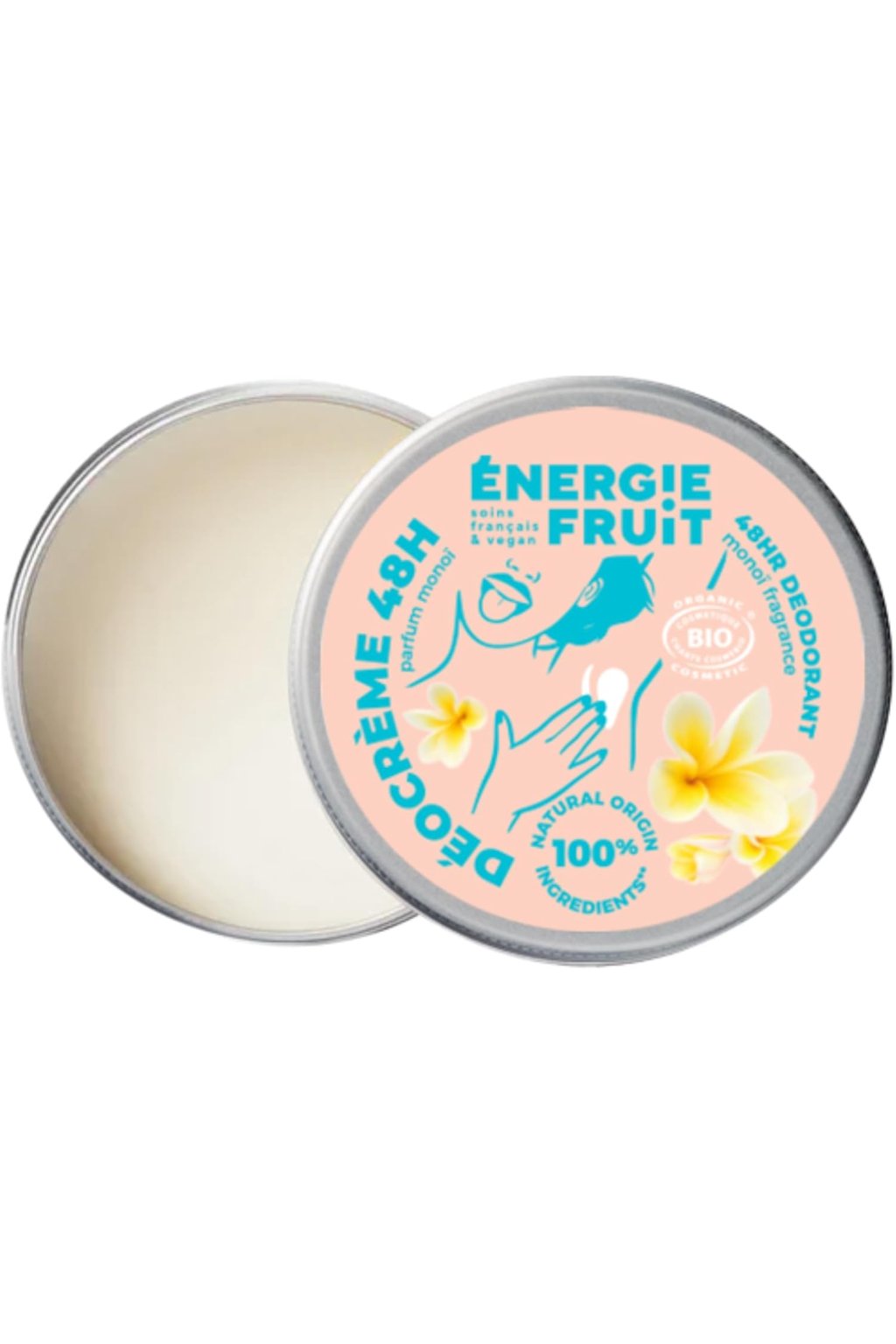 Energie Fruit Déocrème 48H Monoï Fragrance Organic 45 g to bezodpadowy dezodorant w kremie o słodkim zapachu monoi, który pozostawia pachy świeże i nawilżone do 48 godzin.