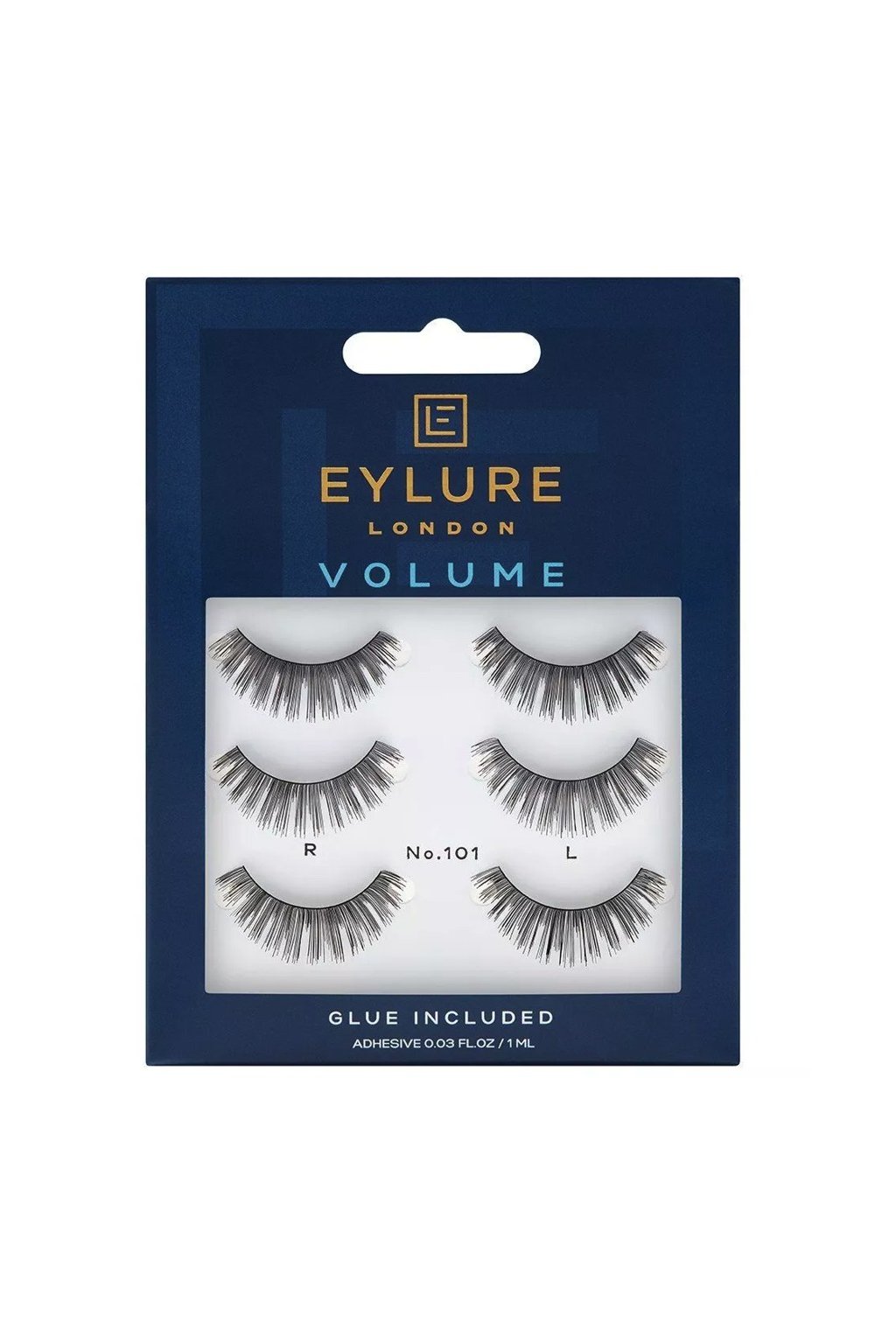 Te rzęsy Eylure w stylu 101 pochodzą z serii Volume. To opakowanie zbiorcze zawiera trzy pary rzęs Eylure Volume style 101 oraz jedną małą tubkę (1 ml) kleju do rzęs.