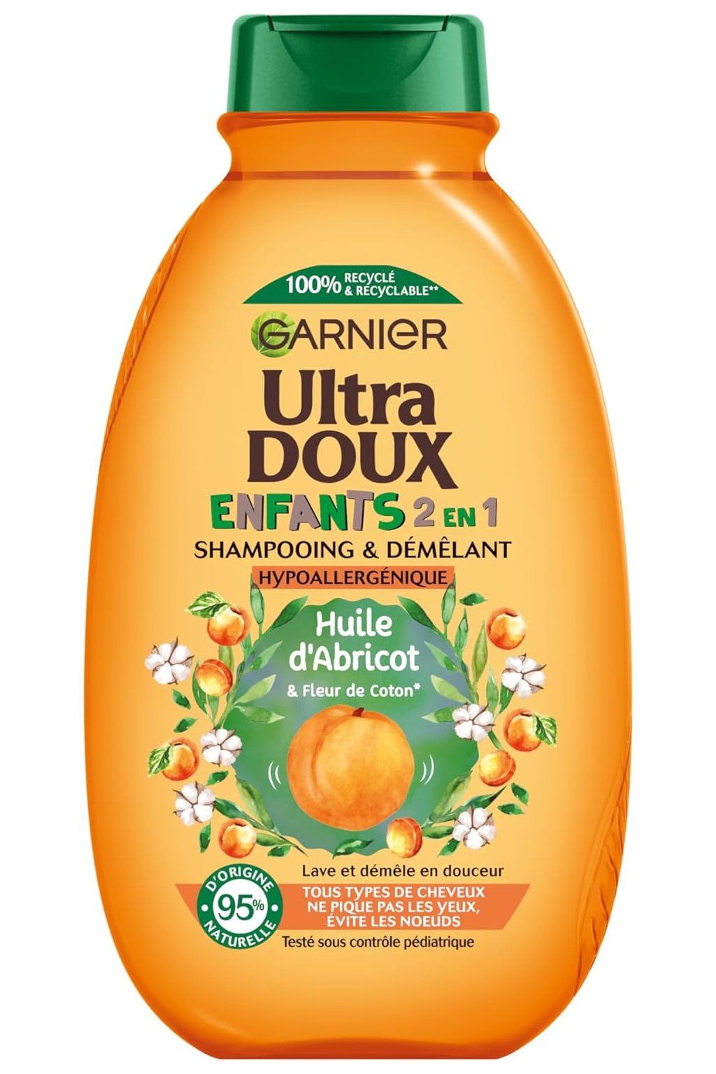 Garnier Ultra Delikatny Szampon 2 w 1 z Morelą i Kwiatem Bawełny dla dzieci. Kwiat bawełny jest znany ze swoich właściwości zmiękczających w delikatnej, wyjątkowo rozczesującej formule.