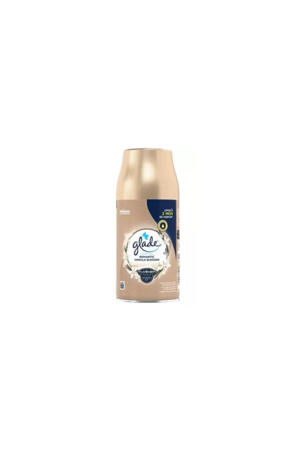 Glade Romantic Vanilla Blossom 269 ml - wymienny wkład do automatycznego odświeżacza powietrza o kremowo-kwiatowym zapachu wanilii i szlachetnego drewna, działa do 60 dni.