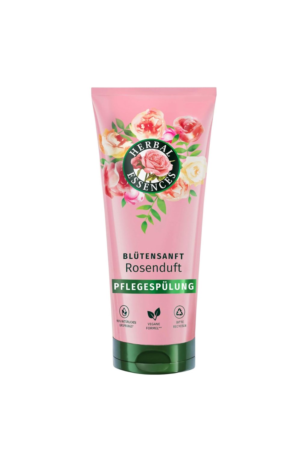 Herbal Essences Blütensanft Rose Scented Conditioner 250 ml to delikatna odżywka pielęgnacyjna, która nawilża i odżywia włosy, jednocześnie otaczając je pięknym zapachem kwiatów róży. Dzięki zawartości ekstraktów roślinnych pomaga wygładzić włókna włosów, ułatwia rozczesywanie i nadaje włosom zdrowy połysk. Jego lekka formuła nie obciąża włosów i pozostawia je miękkie, lekkie i świeże. Idealny do codziennego stosowania, szczególnie w przypadku włosów normalnych i suchych, które wymagają delikatnej, ale skutecznej pielęgnacji.
