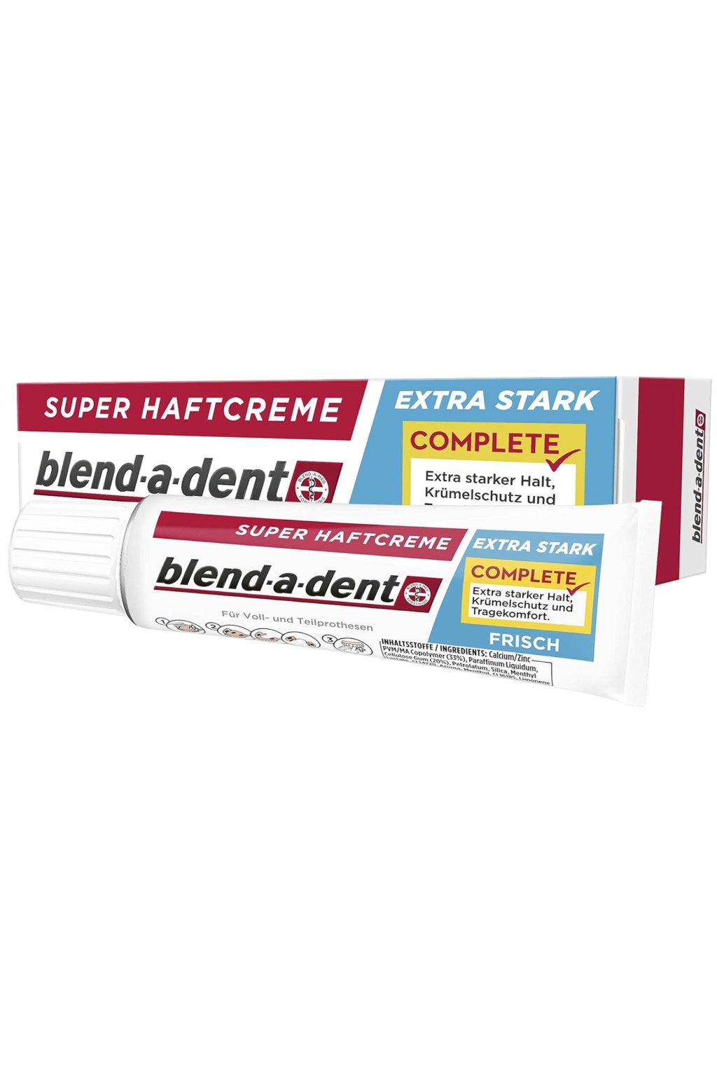 Blend-a-dent Super Adhesive Cream Extra Strong to niezawodny klej do protez, który zapewnia całodzienne, mocne dopasowanie do protez całkowitych i częściowych. Dzięki wyjątkowo mocnej formule krem zapewnia bezpieczne dopasowanie, które pozwala jeść, mówić i uśmiechać się przez cały dzień bez obaw. Jego aplikacja jest łatwa i pozostawia uczucie czystości bez nieprzyjemnych smaków. Blend-a-dent oferuje dyskretne i wygodne wsparcie, które sprawi, że poczujesz się pewniej podczas codziennych czynności. Idealny dla każdego, kto szuka długotrwałego rozwiązania do bezpiecznego dopasowania protez.