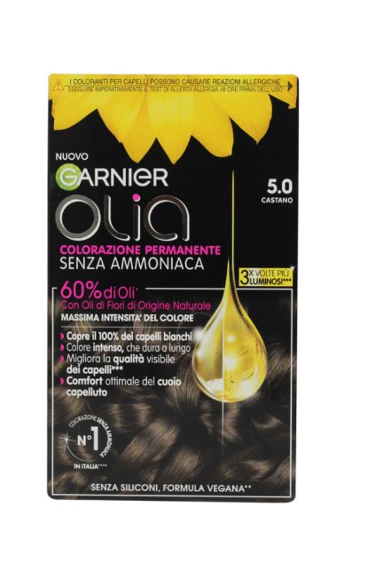 GARNIER Olia Farba do włosów - 5.0 Brązowy Garnier Olia to trwała farba wzbogacona olejkami kwiatowymi. Zapewnia maksymalnie intensywny kolor i do 100% pokrycia siwych...