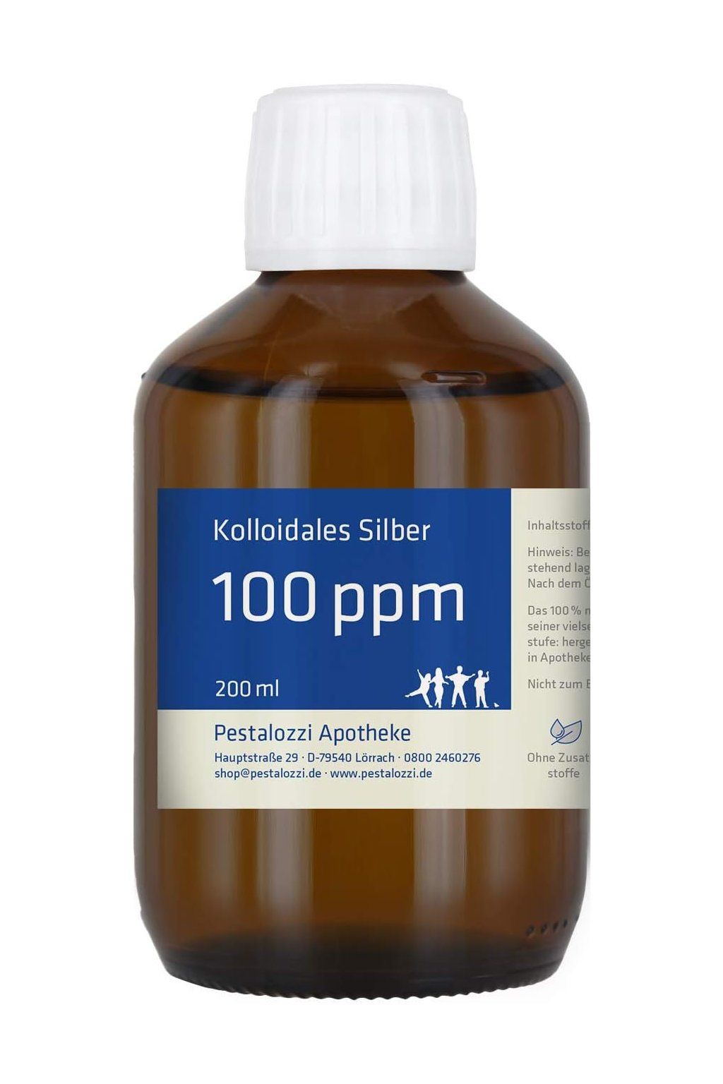 Pestalozzi Apotheke 100 ppm to w 100% naturalne srebro koloidalne produkowane metodą apteczną dla maksymalnej czystości i skuteczności. Dzięki wysokiej koncentracji 100 ppm ma silne właściwości antybakteryjne, które pomagają w pielęgnacji skóry, gojeniu drobnych ran lub jako środek wspomagający higienę.