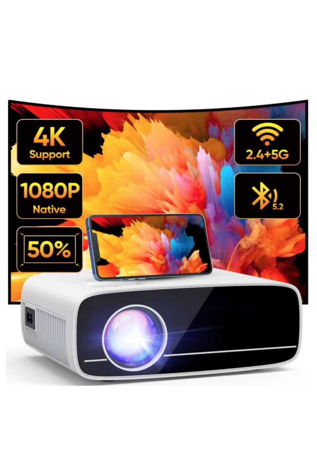 Zmień każdą ścianę w kino domowe dzięki projektorowi AKATUO - eleganckiemu połączeniu wydajności, wzornictwa i łączności. Dzięki natywnej rozdzielczości 1080p, obsłudze 4K i ekstremalnej jasności 15 000 lumenów będziesz cieszyć się ostrymi, kolorowymi obrazami nawet w ciągu dnia. Dzięki łączności Wi-Fi 5G i Bluetooth 5.1 będziesz połączony w kilka sekund i bez kabli. Wbudowane głośniki stereo i cyfrowa korekcja geometrii obrazu zapewniają wrażenia na dużym ekranie. To urządzenie jest idealne do nocnych maratonów filmowych, gier i prezentacji. AKATUO - projektor, który myśli o wszystkim z wyjątkiem kompromisów.
